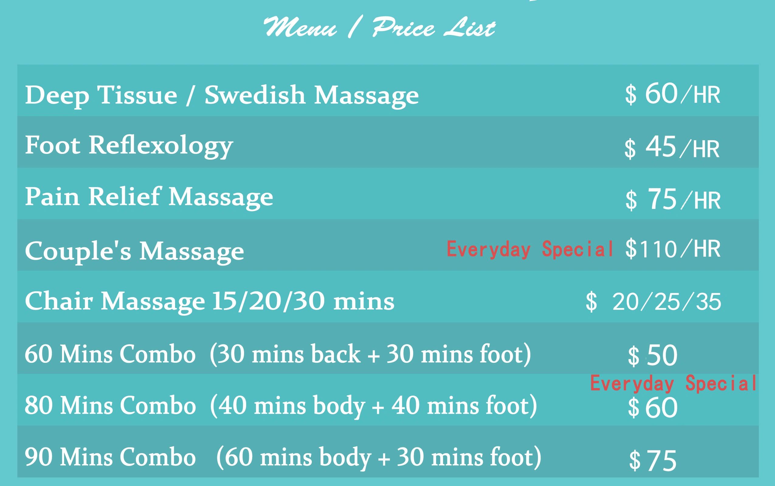 Experience the best of both worlds with our Deep Tissue and Swedish body massage. Our Deep Tissue technique targets deep muscle knots, relieving chronic pain.(Friendly Tip: Coco,Selina, and Paul are the best at deep tissue massage)Meanwhile, our Swedish massage offers gentle relaxation through soothing strokes. Get ready to unwind and rejuvenate in one session.